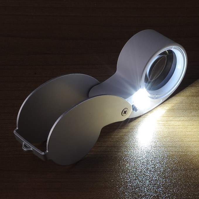 Mini 40X Power Jewelers Magnifier Magnifying Glass Eye Loupe Jewelry Store Silver LED Lights Jeweler Loupe Folding Magnifier