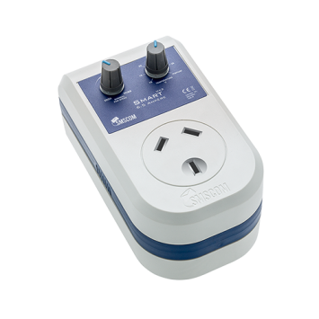 The SMSCom plug-in Smart fan speed controller is a great little piece of kit that allows you to control the speed of your in-line duct fan. The unit plugs directly into a mains outlet and your extraction fan plugs directly into the socket located on the front of the unit. The control on the front of the unit allows the user to manually adjust the speed of the fan and thereby control the rate of extraction.