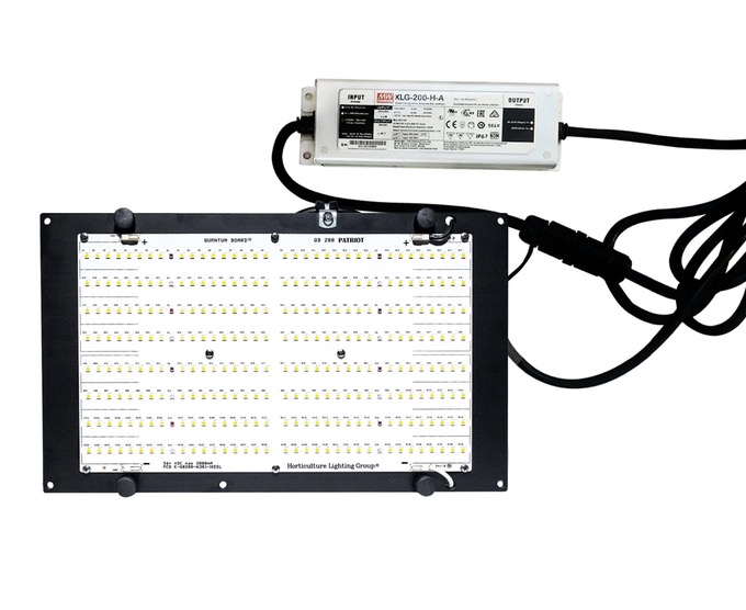 HLG 150 Patriot is a 150W LED lamp and powered with our new custom QB288 Board, a LED Module designed by Horticulture Lighting Group. Each board has 272 Full Spectrum LM301H LED, 8 Deep Red 660nm LEDs. Extended cord allows for remote mounting of the driver.