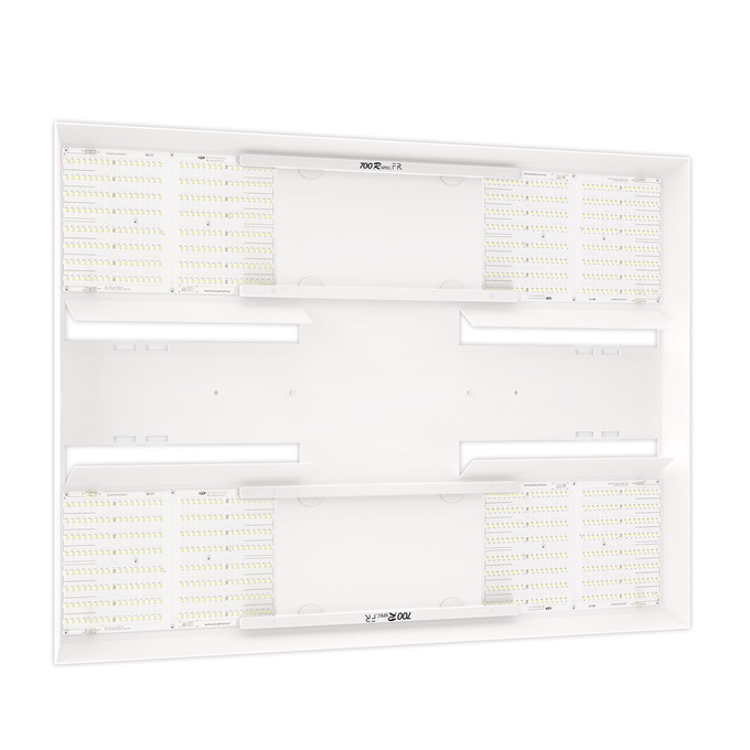 HLG 700 Rspec FR is designed for home and commercial growers looking for cost-effective lamp with high performance. Dimmable design makes it ideal for a 4x4 or 5x5 coverage in grow tents, flood tables and rolling benches. This lamp is powered by four QB272 Quantum Boards® and includes 730nm far-red along with the 660nm deep red spectrum.