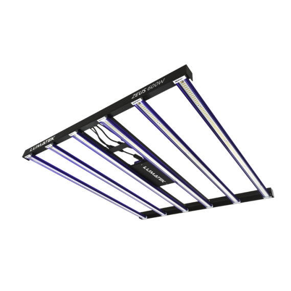 For different cultivars, propagation, and vegetative growth periods the LUMATEK ZEUS 600W PRO 3.1 may be dimmed without losing efficiency. The high efficiency and low powered LED configuration with 6 LED bars reduce the temperature of the LEDs increasing the output and improving light maintenance.