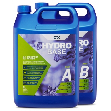 Hydro BASE nutrient is formulated for all types of hydroponic systems and used with CX Horticulture nutrient additives during the vegetative and flowering period.