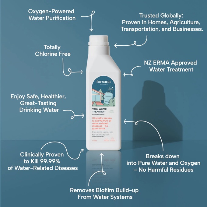 Your trusted solution for safe, effective water disinfection in domestic and commercial storage tanks. It is ideal for drinking water systems in homes, holiday baches, camping grounds, lodges, cafes, farm stays, boats, caravans, and motorhomes.