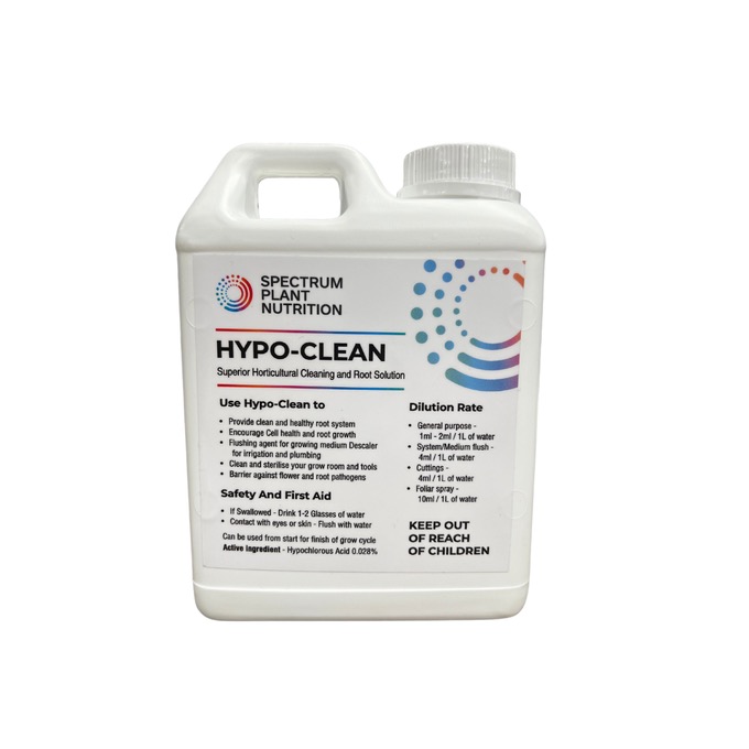 Hypo-Clean is many products in one! Hypo-Clean is key to providing healthy white roots, maintaining a clean reservoir, irrigation or clean hydroponic systems, antibacterial and anti fungal properties and a great way to keep your room and tools clean! Can you afford not to use Hypo-Clean?!