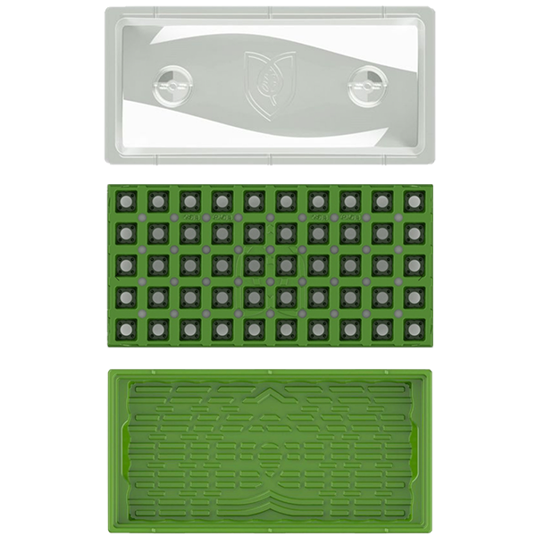 The FloraFlex® Incubator™ Kit includes the full Incubator™ System of components. It has been designed to accelerate growth through patent pending aerated convection. Used together with the Incubator™ Bottom Tray, the Incubator™ Dome can be used completely closed or allow airflow using our signature airflow lifts. The Incubator™ 50 Cell – 40|40 Insert Tray 1.25″ nests inside the system with easy to grab and lift handles.