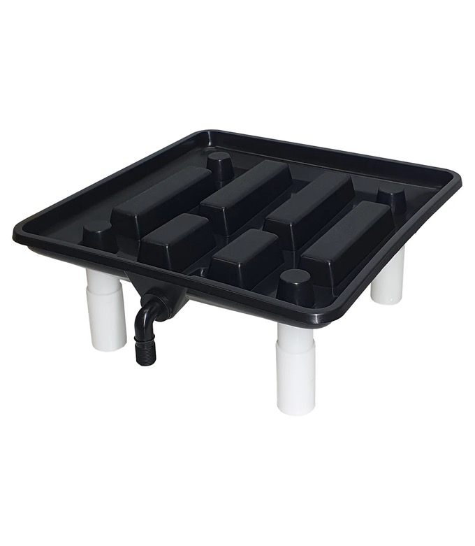 Each Tray comes with 4 x 1-1/4" PVC Legs (6" Height) that can be used to elevate off cold floors or closer to lighting systems. With a 1/2" MPT Elbow fitting (included), these Runoff Trays can be assembled to any growing application that cultivators prefer.